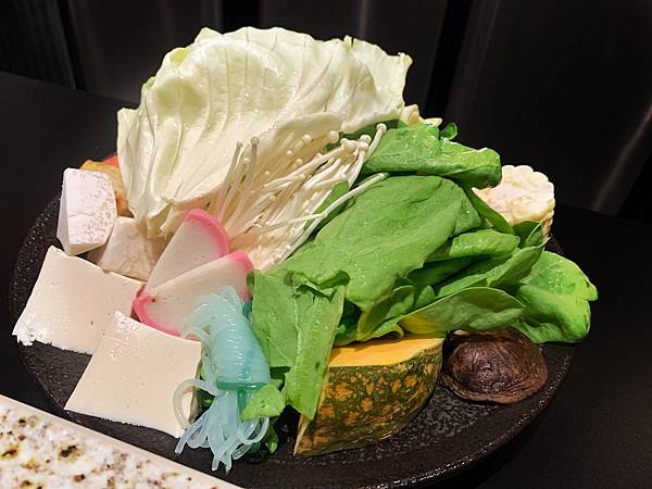 兩種湯底的菜盤內料不同,壽喜燒的菜盤樣式較少但菇類很豐富,喜歡吃菇的可以點~