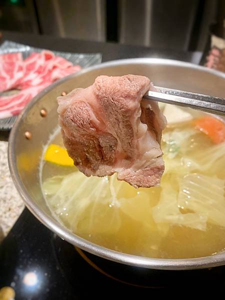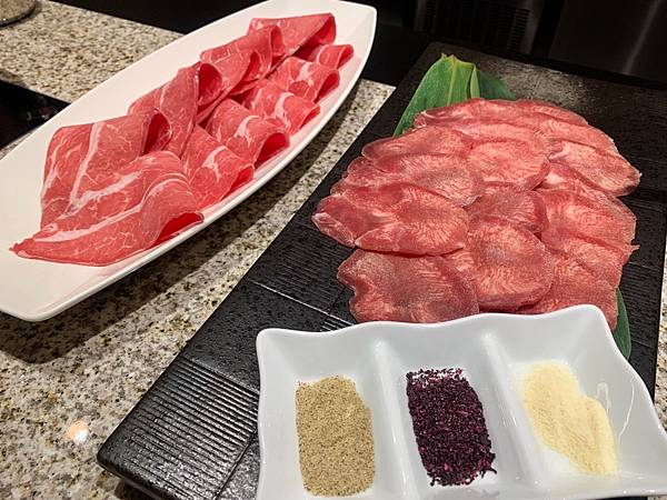 我們點了薄切牛舌、伊比利黑毛豬及頂級羊梅花三種(其中一鍋是壽喜燒)